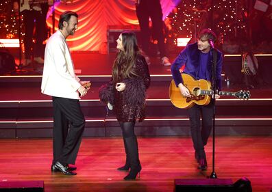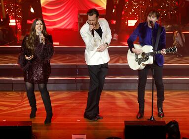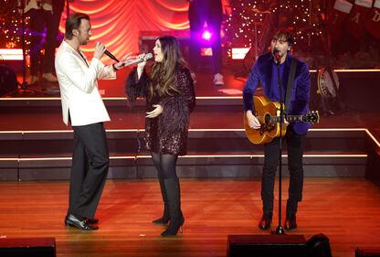 Lady A: This Winter's Night Tour 2025 - Nashville, TN NASHVILLE, TENNESSEE - DECEMBER 21: Charles Kelley, Hillary Scott and Dave Haywood of Lady A perform at the Ryman Auditorium on December 21, 2025 in Nashville, Tennessee. (Photo by Jason Kempin/Getty Images) (Jason Kempin/Getty Images)