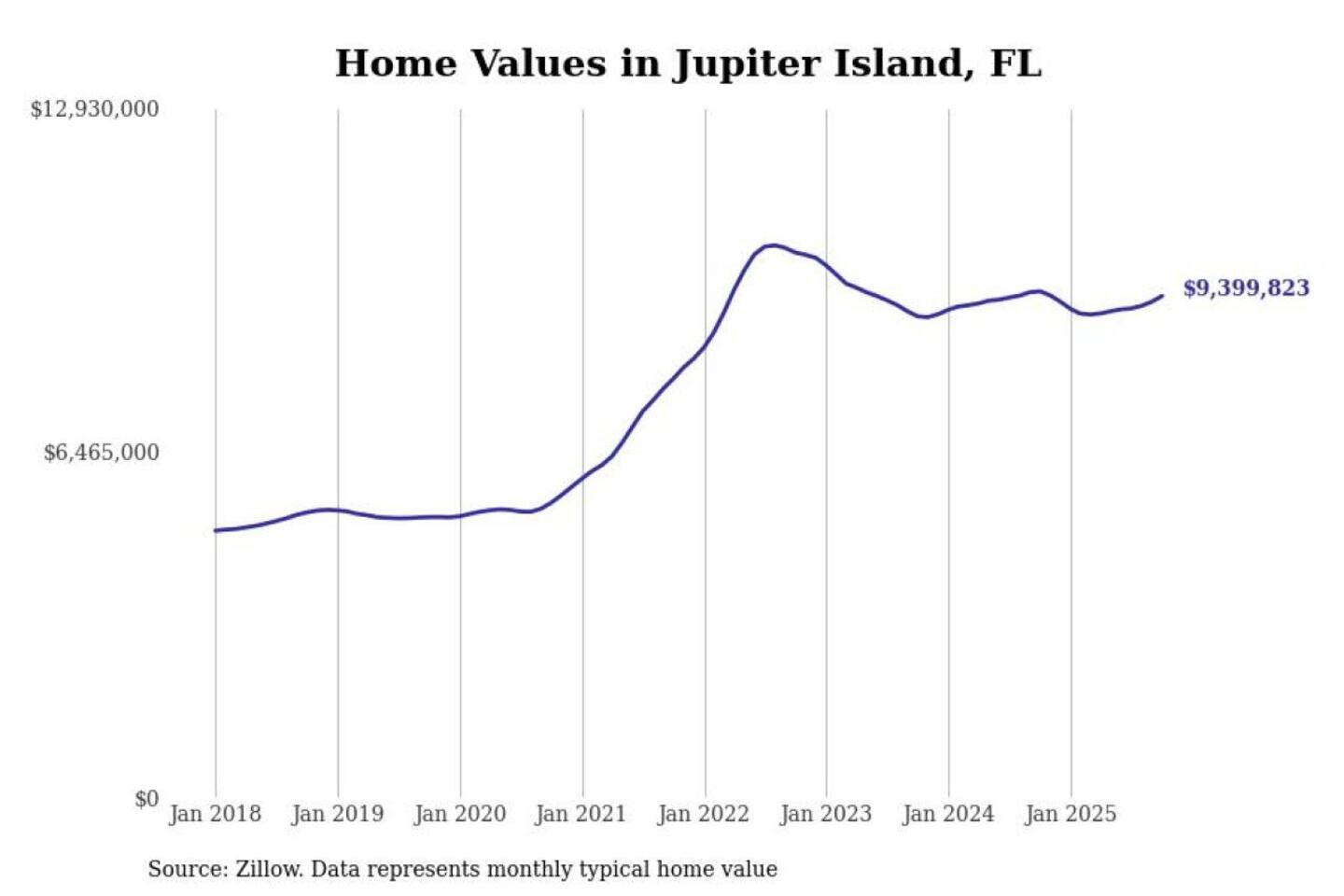 Stacker compiled a list of cities with the most expensive homes in Florida using data from Zillow. Cities are ranked by the Zillow Home Values Index for all homes as of October 2025. The charts in this story were created automatically using Matplotlib.