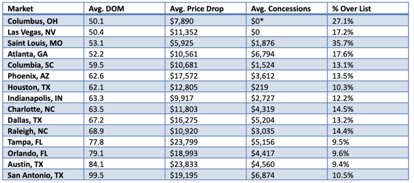 *Columbus concessions data shows as $0 or negative, which may reflect a reporting methodology difference in that market’s MLS.
