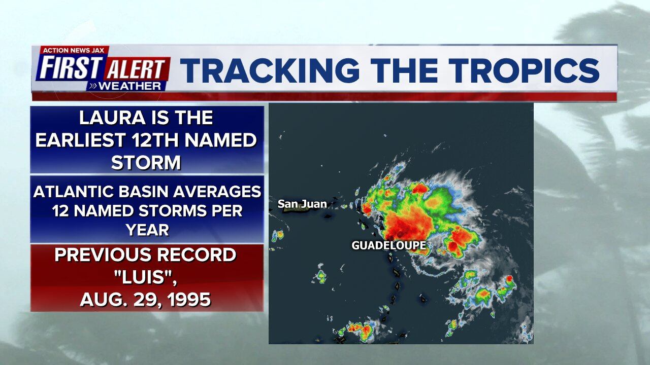 Jacksonville, Fl — Update 9:15 am Friday - The National Hurricane Center says Tropical Storm Laura has formed in the central Atlantic Ocean. We have been tracking the system for multiple days, as it began as Tropical Depression #13.