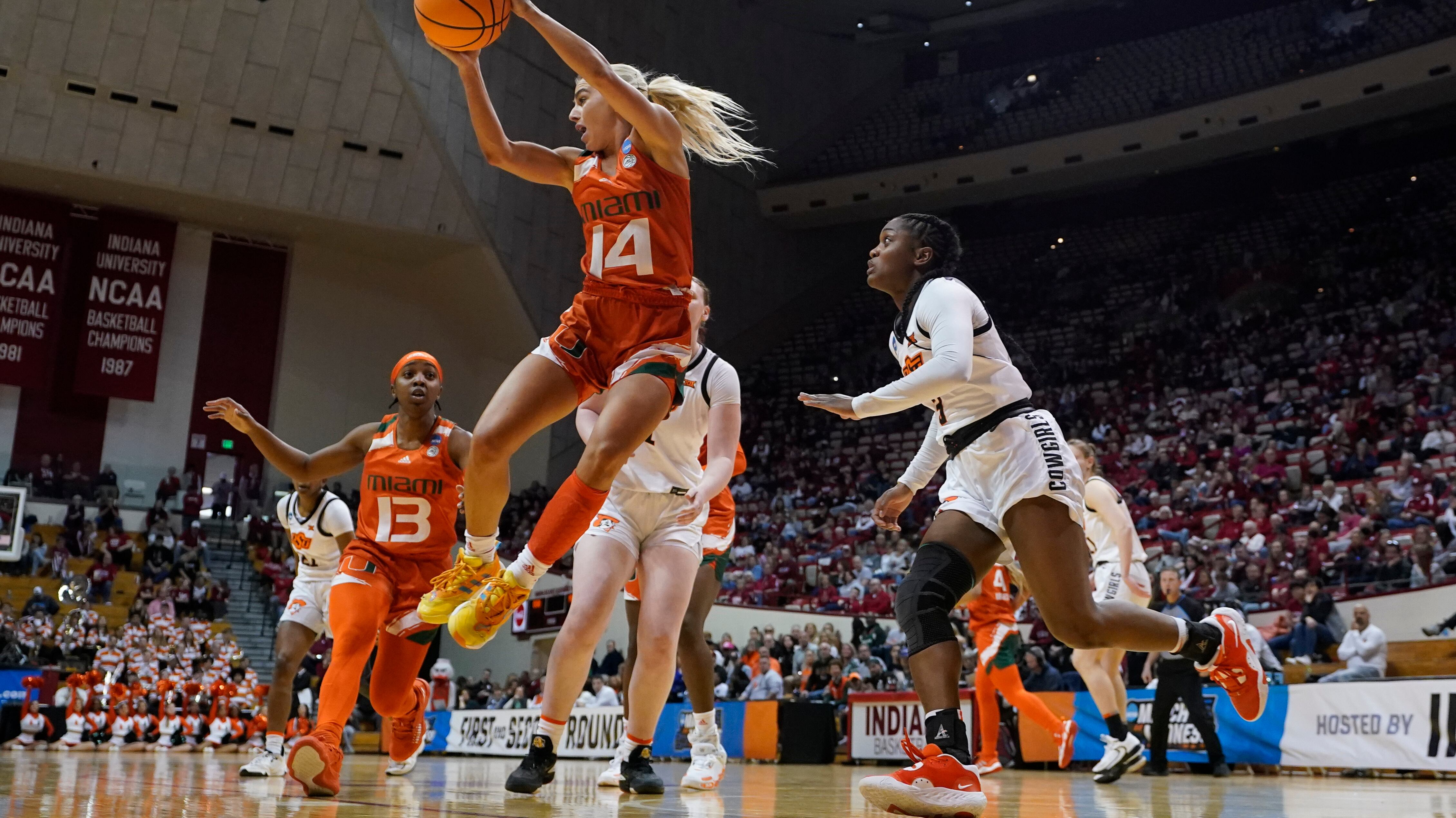 Miami outscored Oklahoma State by 13 points in the third quarter after trailing 37-20 at halftime. The Hurricanes put up 20 points in the third quarter and held Oklahoma State to seven to cut the lead to 44-40 before the start of the fourth. Miami then took the lead with just under nine minutes remaining on Destiny Harden’s jumper and never trailed the rest of the way.