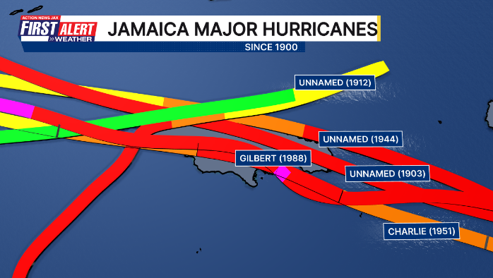 “Major” - Cat. 3 or 4 hurricane landfalls directly on Jamaica since 1900: